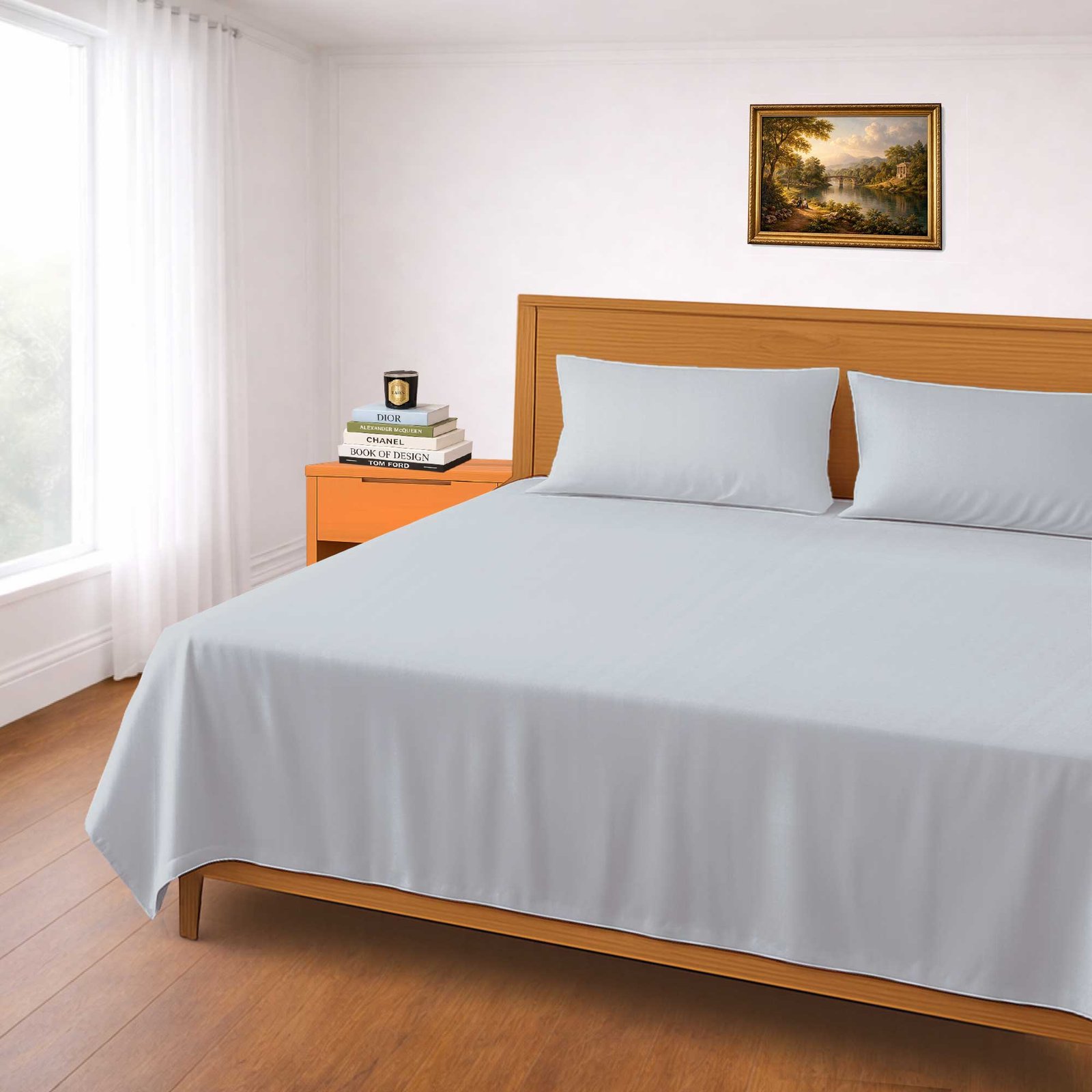 Experience premium comfort with this 100% organic 300 TC cotton king-size bedsheet, offering natural softness and excellent breathability for a cool and restful sleep. Designed in a classic solid pattern, it includes 1 king bedsheet (108×108 inches) and 2 matching pillow covers for a clean, hotel-style look. Hypoallergenic, durable, and easy to care for, this elegant bedsheet set is ideal for everyday use, guest rooms, and sensitive skin.