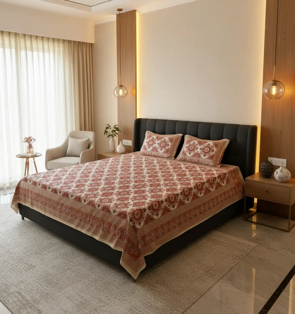 - Ethnic Block Print Design – Traditional block print design that brings charm and style to your bedroom décor.