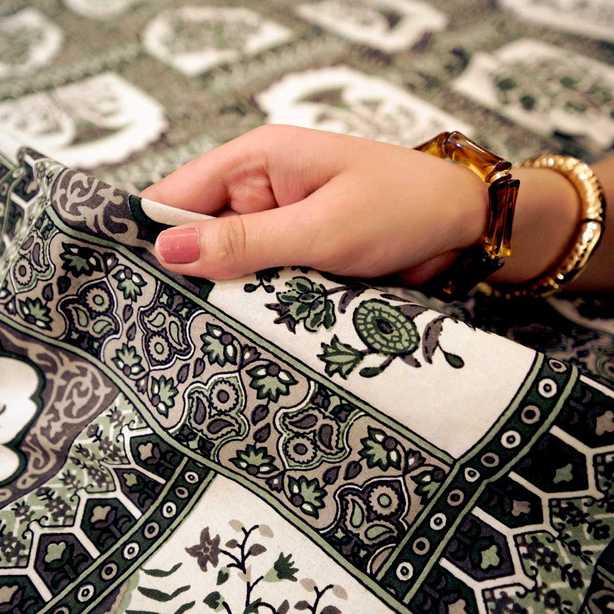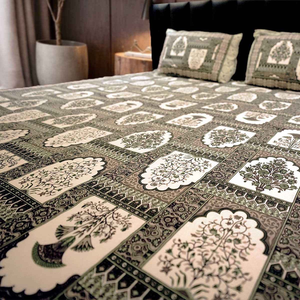 The Essence of Royalty: Transform your bedroom into a sanctuary of grand heritage with this Mughal-inspired masterpiece. Drawing inspiration from classical Persian architecture and traditional hand-art, this design features a sophisticated palette of Olive Green and Charcoal Grey. The structured layout, complete with intricate floral borders and centralized motifs, creates a grounded, earthy, and truly luxurious ambiance that anchors your room’s décor.